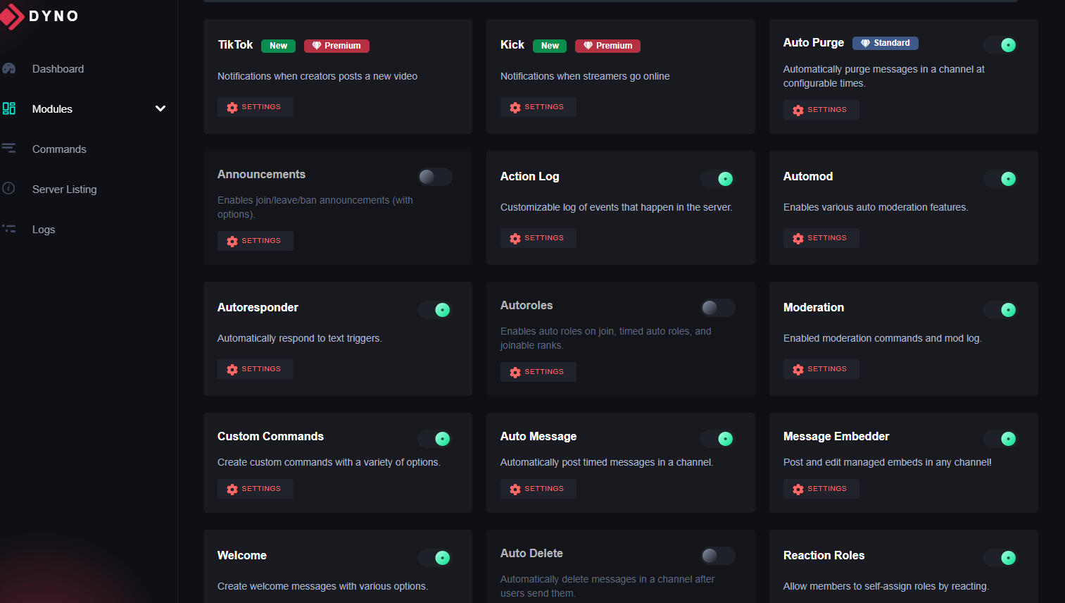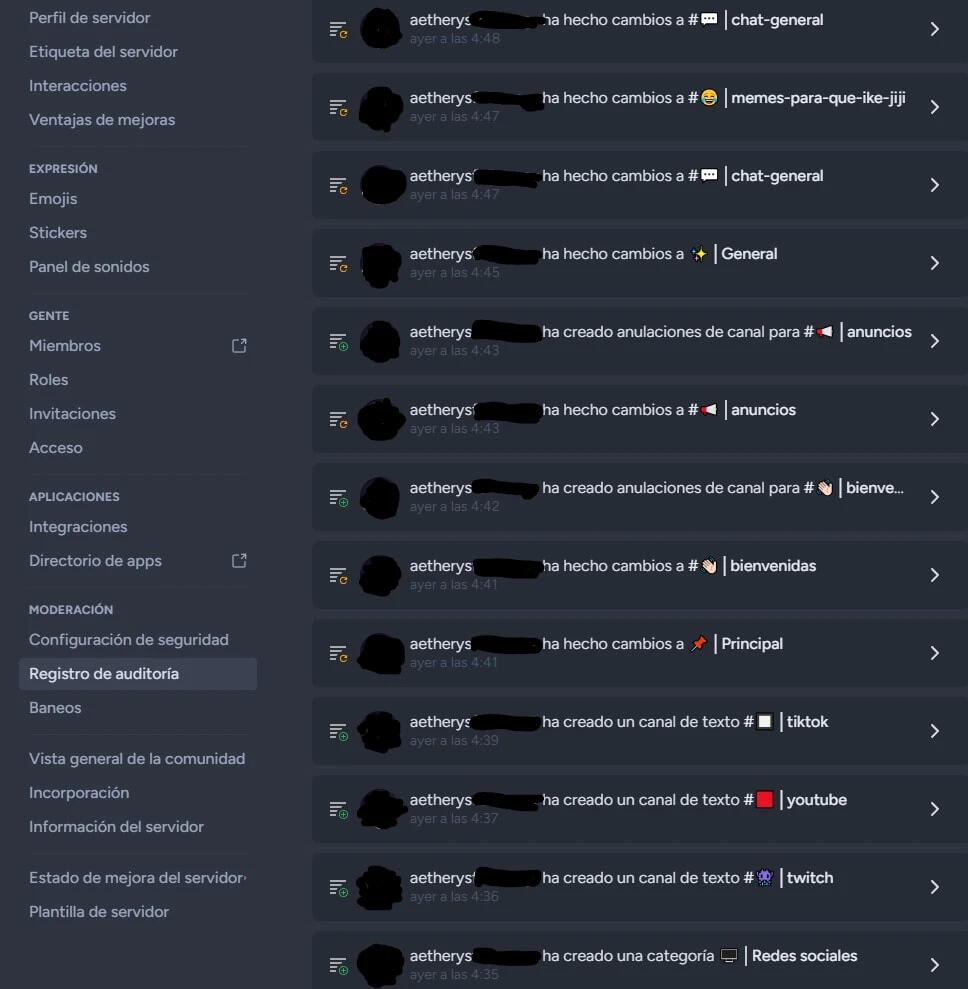 • Sistema de registro (seguimiento de invitaciones, salidas del servidor, etc.).